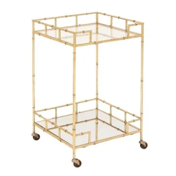Urban Designs 7727556 Gold Leaf 2-Shelf Square Metal Mirror Mobile bar Cart Gold, Medium