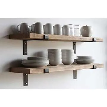 Urban Legacy Deep Shelves | White Oak Hardwood with Torched Finish | Full Brackets | High Weight Capacity | Set of 2 (Torched Oak, Bracketed 48" x 11" x 2")