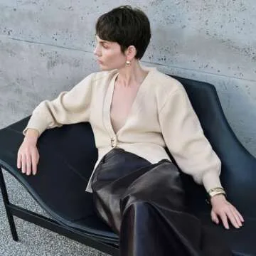 URBAN REVIVO Women Knitted Cardigans Long Sleeve V-Neck Lightweight Sweater One Leaf Button Down Outwear Beige, Small