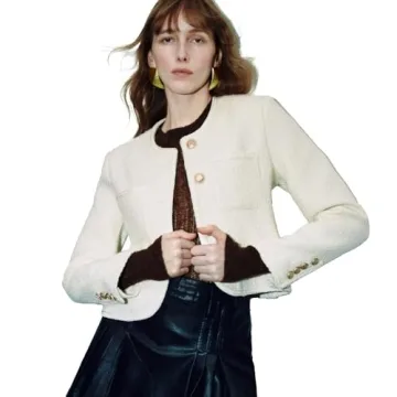 Show moreIntroducing the URBAN REVIVO Women's Tweed Blazers Jacket, a stunning addition to any fashion-forward wardrobe. This beautifully crafted cropped blazer is designed with stylish gold button-down closures and convenient waist pockets, ensuring practicality while keeping you effortlessly chic. The elegant tweed fabric not only enhances the jacket's durability but also provides a luxurious feel against your skin. With a contemporary cut and delicate features including set-in shoulder pads and meticulous stitching, this blazer masterfully balances vintage charm and modern appeal. Experience the perfect blend of style and functionality with this versatile tuxedo-style jacket that can seamlessly transition from casual to dressy occasions.