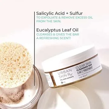 Show more Experience the transformative power of clear skin with the Urban Skin Rx Clear Skin Cleansing Bar! This exceptional product leverages ClearTone Advanced Technology, designed specifically for melanin-rich skin. Enriched with potent ingredients like Salicylic Acid, Eucalyptus Leaf Oil, and Sulfur, this cleansing bar not only exfoliates but also fights blemishes and excess oil for a truly rejuvenating cleansing experience. The soothing eucalyptus scent will invigorate your senses while you cleanse, making your skincare routine feel like a spa escape every day.