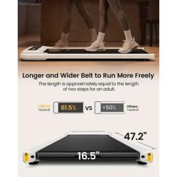 UREVO Under Desk Treadmill, Walking Pad Treadmill with Large Running Area, 2.25HP Treadmills for Home, Desk Treadmill for Office Under Desk with 265lbs Weight Capacity