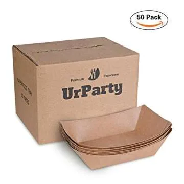 Show moreIntroducing the URPARTY Premium Brown Disposable Paper Food Serving Tray, the perfect solution for hosting unforgettable events! Crafted from high-quality, sturdy cardboard, these trays feature an impressive capacity of 2.5 lbs, making them ideal for a variety of delicious treats—from pasta and burgers to fries, hot dogs, nachos, and more. Their versatile design ensures that both hot and cold food products remain secure, providing a delightful dining experience at carnivals, birthdays, baseball games, fairs, and picnics.