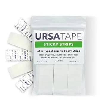 Compared to other double-sided tapes on the market, the *URSA Tape Sticky Strips* distinguish themselves with a formulated adhesive that specifically addresses the needs of fashion professionals and novices alike. Many alternatives fall short, often failing to provide the gentleness or residue-free assurance that our tape guarantees. Choose URSA for an uncompromised experience!