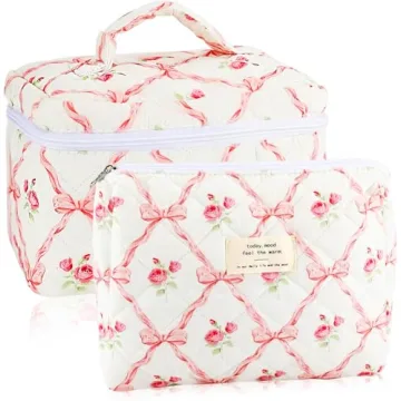 Show moreIntroducing the URSKYTOUS 3Pcs Cotton Quilted Makeup Bag Set, a delightful fusion of fashion and function! This charming set features a unique quilted design in adorable colors that are not only stylish but immensely practical for all your cosmetic needs. Made from soft, durable cotton, these bags are lightweight yet sturdy enough to withstand daily use. With three spacious bags included, you'll find the perfect fit for everything from daily skincare essentials to makeup brushes, making it ideal for maintaining your beauty regime while on the go. The largest bag measures 10.2×7.1×2.8 inches, offering ample room for larger makeup items, while the smaller bags are perfect for stashing tiny essentials like lipsticks and eyebrow pencils.