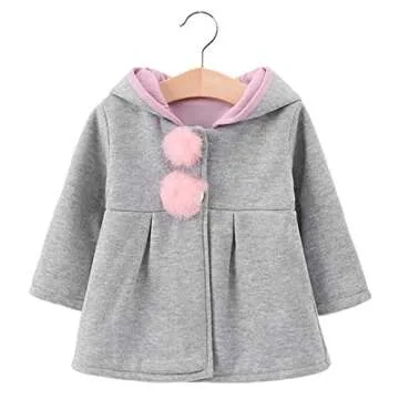 Introducing the adorable Urtrend Baby Girl's Toddler Winter Coat Jacket, designed for little girls who love to stay cozy while looking cute! This charming jacket, offered in a beautiful gray shade, features a stylish hood adorned with bunny ears that adds a playful twist to any winter outfit. The coat is manufactured with a focus on quality, ensuring that it is both warm and soft against your baby's skin. Perfect for those chilly spring, fall, and winter days, this coat combines...