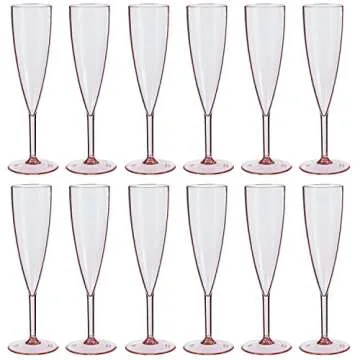 Show moreIntroducing the stunning US Acrylic Plastic Reusable Champagne Flute Set, elegantly designed in a beautiful rose pink color. This set of 12 flutes is perfect for those looking to add a touch of sophistication to every celebration. Made in the USA from high-quality, shatterproof plastic, these glasses not only mimic the classic appeal of glass but are also built to last. With a capacity of 5oz, they are ideal for serving your favorite bubbly beverages, including champagne, sparkling wine, or refreshing mimosas. The unique one-piece construction ensures durability and a chic look, making them a stylish choice for both formal gatherings and casual brunches.