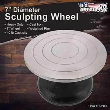 Show moreDiscover the power and precision of the US Art Supply® 7” Diameter Sculpting Wheel, designed specifically for artists, sculptors, and decorators engaged in pottery, floral arrangements, model-making, and more. This heavy-duty sculpting wheel is not just a tool, but a robust artistic partner that enhances your creative process. Made from nearly indestructible heavy cast metal, it features a solid construction that provides stability and durability, allowing artists to focus on their craft without distraction. The advanced ball-bearing mechanism ensures a smooth, effortless spin – the quality that discerning artists demand.