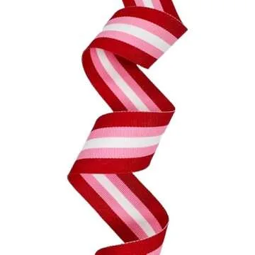 USA | American Made 7/8” Cinnamon Sweetie Valentine Striped Grosgrain Ribbon (Red, Pink, White Ribbon) - 20 Yards (Multiple Widths & Yardages Available)