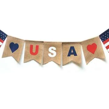 USA Banner Decor for Any US Patriotic Holiday or Theme. Burlap Material.