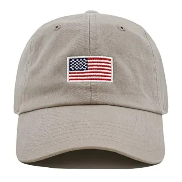 USA Flag & Embroidery Premium 100% Cotton Low Profile Adjustable Baseball Dad Cap (Flag-Khaki)