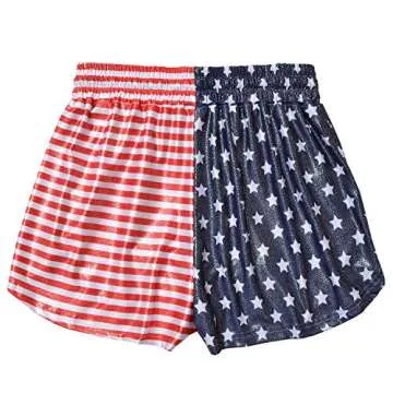 USA Flag Metallic Shorts for Women 4ht July Sparkly Pants Patriotic with Glasses
