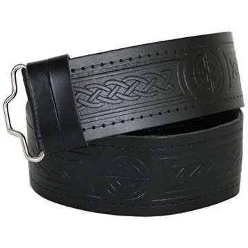 USA Kilts Men's Premium Embossed Leather Kilt Belt - Adjustable & Stylish