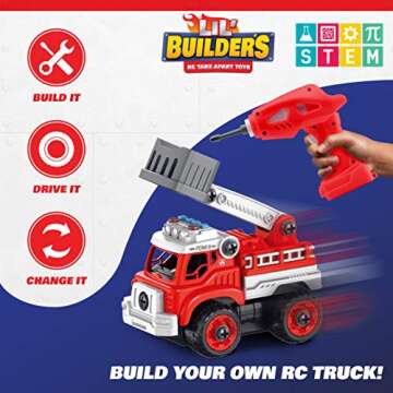 USA Toyz Lil Builders RC Fire Truck Building Toys - 4-in-1 STEM Educational Kits