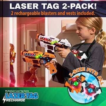 USA Toyz Rechargeable Laser Tag Game - 2pk Set with Guns and Vests, 2 Laser Guns, 2 Lazer Tag Vests with FX, LEDs Outdoor Multiplayer Toy Shooting Games for Kids, Teens, Adults