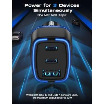 - Efficient 3-Device Charging: 32W Super Fast USB-C charging with 2 USB-C ports and 1 USB-A port.