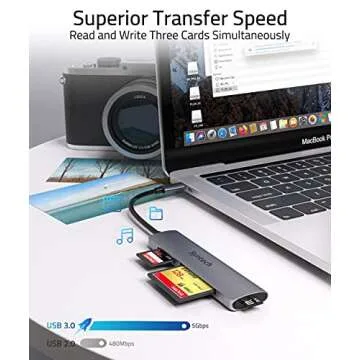USB C Card Reader, Syntech 3- in-1 Thunderbolt 3 Memory Card Reader Hub for CF, SD/SDHC, TF/Micro SD Compatible with MacBook Pro,iPad Pro 2020, iPad Air 4, Galaxy S20/S10 and More, Space Grey