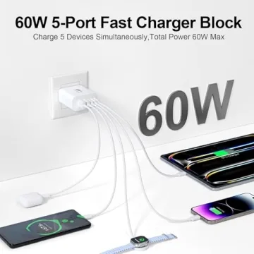 60W 5-Port USB C Fast Charging Block for iPhone, iPad & Samsung