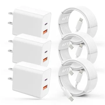 USB C Charger iPhone Charger Fast Charging 3Pack 20W PD+QC3.0 USB A Dual Port Wall Charger Block with 6FT USB C to Lightning Cable Compatible with iPhone 14 Pro Max/13Pro/12/11/XS/XR/X