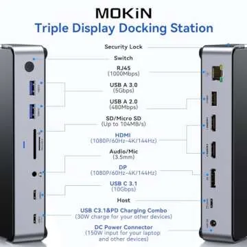 USB C Docking Station 3 Monitors - 13 in 1 Functionality with 150W Power