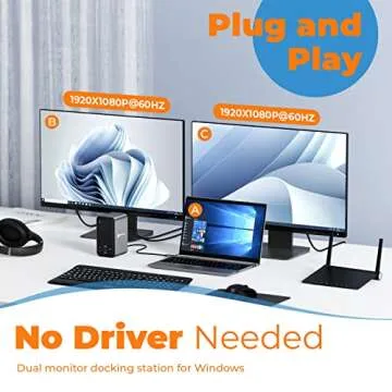 Show moreDiscover the ultimate flexibility and productivity enhancement with the TobenONE USB C Docking Station. Aimed specifically at Windows laptops, this 13-in-1 USB C Dock transforms your device by offering 13 different ports, expanding your connectivity options to an unprecedented level. With dual HDMI outputs, a DisplayPort, and a multitude of USB ports (6 in total), you'll be able to connect multiple external monitors as well as all your favorite peripherals, from keyboards and mice to external hard drives and webcams. This elegant dock not only adds functionality but also keeps your workspace clutter-free with just a single USB C cable!