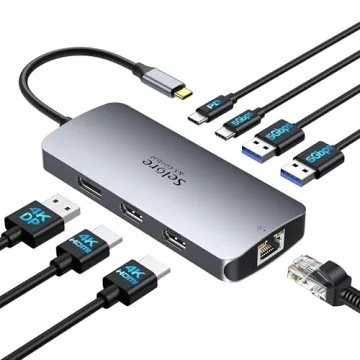 Show moreThe Selore Laptop Docking Station is a versatile USB-C hub that transforms your laptop’s capabilities. This streamlined docking station adapts effortlessly, expanding advanced productivity by allowing a single USB type C/thunderbolt 3/4 port to connect to eight different ports. Featuring impressive specifications, it boasts two 4K HDMI ports, a 4K DisplayPort, two USB 3.0 ports, and a USB-C 3.0 port that allows for data transfer speeds of up to 5Gbps. Moreover, the device is equipped with a PD Port for up to 100W power delivery and Gigabit Ethernet for a reliable wired connection. Users looking for reliable plug-and-play functionality will appreciate its effortless setup; no additional software installation is required.