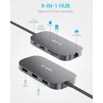 USB C Hub, 9-in-1 Type C Hub with Ethernet Port, 4K USB C to HDMI, 2 USB 3.0 Ports,1 USB 2.0 Port, USB-C Power Delivery, Portable for Mac Pro and Other Type C Laptops