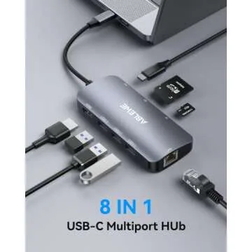 USB C Hub Multiport Adapter, ABLEWE USB-C Hub with 4K@60Hz HDMI, 1Gbps Ethernet, 100W PD, SD/TF Card Reader, 3 USB 3.0 Ports Docking Station Compatible for Laptop/Tablet/PC/Phone