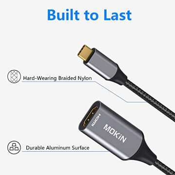 USB C to HDMI Adapter 4k, Type-C to HDMI Connector for Monitor, Thunderbolt 3 Compatible USB-C to HDMI Cord for MacBook pro 2022 iPad 2021 Dell XPS Surface Pro 8 VivoBook Flip 14 Aspire 5 etc