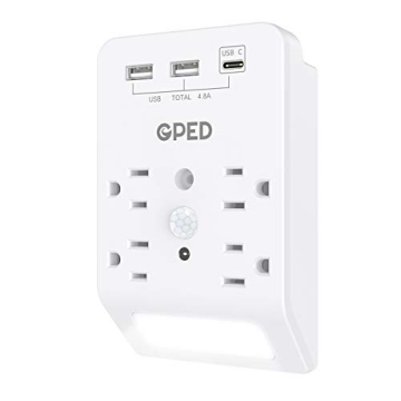 Discover the ultimate in convenience and safety with the USB Wall Outlet with Surge Protection & Night Light by GPED. This cutting-edge device combines four AC outlets with a powerful 15A capacity, so you can efficiently power multiple devices simultaneously without sacrificing safety. The innovative design features two standard USB ports along with a USB-C fast charging port, offering a remarkable total shared output of 4.8A....
