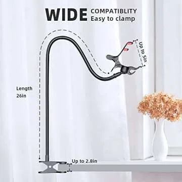 USBERG Phone Holder Clip Bed Gooseneck Mount,Universal Cell Phone Holder Clamp Clip Flexible Lazy Long Arm, Overhead Mount Stand for Bedroom,Desk(Black)