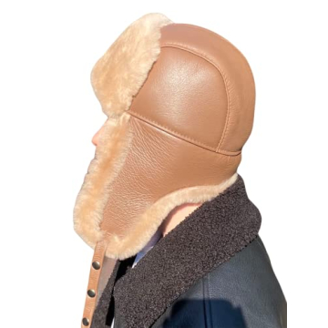 Ushanka Aviator Trapper Leather Hat Men Women, Sheepskin Fur Russian Soviet Earflaps Hat, Warm Outdoor Winter Hat 2024 (US, Alpha, X-Large, Brown)