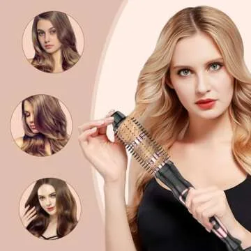 USHOW 1.25 Inch Thermal Brush for Blowout Look, Heated Round Brush with Dual Voltage & Adjustable Temperature, Smooth & Voluminous Curls, Travel-Friendly Hair Styling Tool (Rose Gold, 1.25 inch)