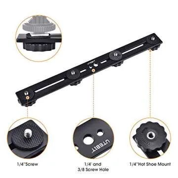 UTEBIT 11 inch Flash Bracket, Long Dual Camera Mount Flash Bracket Extension Bar with 1/4“ Hot Shoe, Straight Flash Brackets 1/4-3/8 Thread Hole Tripod Mount for Camera/LED Light/Microphone
