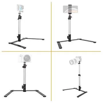Show more This versatile Table Top Camera Stand is the ultimate tool for photography enthusiasts, hobbyists, or anyone wanting to capture stunning images and videos effortlessly. Whether you're an amateur jewelry maker like many of our satisfied customers, a content creator wanting to elevate your YouTube videos, or simply someone in need of a reliable camera stand, this product is designed to meet your needs.