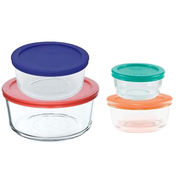 Show more Introducing the remarkable Utensilux Bundle Pyrex 8-Piece Round Set, a top-tier collection of four glass storage containers accompanied by secure-fitting lids. With a versatile range that includes 7-cup, 4-cup, 2-cup, and 1-cup sizes, this comprehensive set is designed to simplify your meal prep and food storage endeavors. Every container is constructed from premium Pyrex glass, renowned for its durability and resistance to stains, making it a reliable choice for any kitchen. Say goodbye to flimsy plastic containers and embrace this environmentally friendly and BPA-free solution that ensures your meals remain fresh and flavorful.