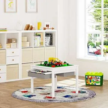 UTEX 2 in 1 Kids Construction Play Table with Storage Drawers and Built in Plate (White)