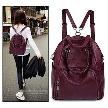 UTO Women Backpack Purse PU Washed Leather Convertible Ladies Rucksack Crossbody Shoulder Bag Red