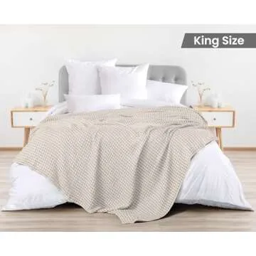 Utopia Bedding Khaki 100% Cotton Waffle Blanket 300 GSM [King - 90x108 Inch] Soft Lightweight Breathable Bed Blanket for All Season