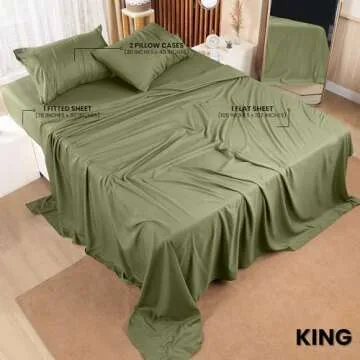Show moreTransform your sleep experience with the **Utopia Bedding King Bed Sheets Set**. Comprising four luxurious pieces, this bedding set is crafted from premium brushed microfiber polyester that is not only soft to the touch but also surprisingly durable, ensuring long-lasting comfort in your bedroom. The set includes a generous flat sheet measuring 105 by 102 inches that features a chic 2 inches self-hem for an elegant finish. The fitted sheet, measuring 78 by 80 inches, is designed with a 15-inch box that accommodates oversized mattresses, offering a snug fit for a well-made bed. Two pillowcases measuring 20 by 40 inches each, with a stylish 4 inches hem, complete this exquisite set. Available in a stunning olive color, this bed sheet set is a perfect blend of style, comfort, and functionality, making your bed an inviting haven for relaxation.