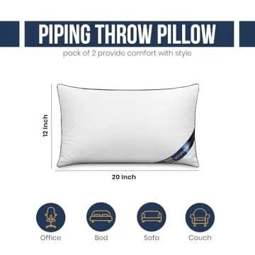 Show moreTransform your home decor with the Utopia Bedding Throw Pillow Inserts. This elegant pack of two decorative pillow inserts, each measuring 12 x 20 inches, is designed to elevate your living experience while providing unmatched comfort. Crafted from quality materials, these inserts are not merely a decorative addition but a functional choice for all your pillow needs. Whether you’re seeking a touch of elegance for your sofa or extra comfort for your bed, these pillows serve multiple purposes seamlessly. The exquisite navy-blue piping along the edges ensures a refined look, making these inserts a perfect match for cushion shams and casual sofa throw pillows alike.