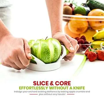 Show more The ultimate apple slicer is here to simplify your fruit preparation experience! Crafted with premium quality stainless steel, this slicer boasts an extra sharp blade that guarantees perfect cuts every time. Say goodbye to uneven slices and hello to consistency with this convenient tool that slices fruits into eight uniform sections in one effortless motion. Designed for user-friendliness, the anti-slip silicone handles provide a comfortable grip, making slicing a breeze even for those new to kitchen gadgets.