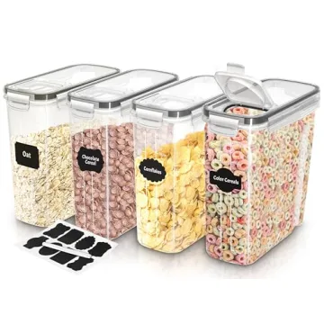 These containers have garnered rave reviews from users who appreciate their clear design that lets them see the contents without opening each container. Customers are thrilled with the marked improvement in freshness they experience when using these airtight containers compared to traditional bags. With the bonus of included plain stickers and a chalkboard marker, labeling your items has never been easier! Get organized and maintain freshness like never before with the Utopia Kitchen Cereal Containers Set!