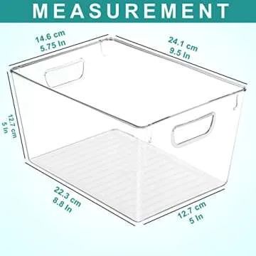 Show more Transform your pantry and kitchen with the innovative Set of 4 Pantry Storage Organizers – a perfect blend of functionality and style! Designed with minimalist aesthetics, these organizers boast a durable shatter-resistant construction and each measures a convenient size of 9.5 x 5 x 5.75 inches, making them perfect for optimizing your storage spaces. Say goodbye to clutter and hello to organization with these clear BPA-free plastic containers, which are crafted to let you locate your items at a glance.