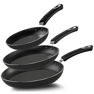 Featuring impeccable heat distribution, these pans ensure your meals are cooked to perfection, whether you're using electric or ceramic cooktops. The expertly engineered nonstick surface minimizes the need for oil, making your meals healthier and easier to prepare. Plus, their wobble-free Bakelite handles are riveted securely for safety and comfort, ensuring you can maneuver pan-fried delicacies with ease.