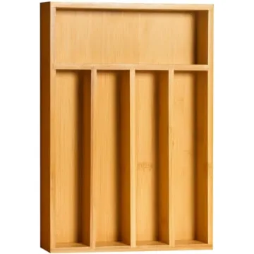 Show moreIntroducing the Utopia Kitchen Bamboo Expandable Silverware Organizer, a beautifully crafted kitchen accessory designed to seamlessly blend functionality with aesthetics. Measuring 14x10 inches, this exquisitely designed organizer features five spacious compartments that provide ample room for your kitchen utensils, cutlery, and essentials. Say goodbye to cluttered drawers and embrace a neatly organized cooking environment, allowing you to focus on your culinary creations in style.