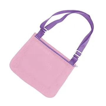 UTTPLL Mesh Beach Bag for Kids Quick Dry Beach Accessories Vacation Trip Toddler Seashell Collecting Colorful Net Tote Boy Girl Swimming Accessories Pink&Purple