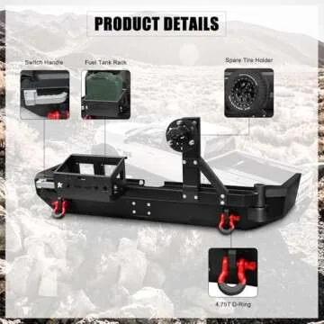Moreover, this model is equipped with a heavy-duty tire carrier and two D-ring mounts that are welded into the bumper for enhanced strength and utility. Capable of supporting up to 9000 lbs, the included D-rings (4.75 Ton capacity) are perfect for recovery operations, while the built-in spare tire holder and oil drum storage box add exceptional practicality to your off-road setup. This allows you to carry not just your spare tire but also essential gear, ensuring you are well-prepared for any outdoor adventure.