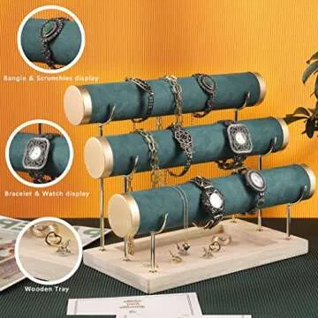 When compared to other jewelry organizers on the market, the UUJOY 3 Tiers Bracelet Holder stands out for its attention to detail, including its protective velvet layers and aesthetic design. Unlike many competitors, this bracelet holder includes a unique removable feature that maximizes flexibility for various use cases, making it suitable for home decor as well as craft displays. The sturdy wooden base adds to its durability, ensuring your jewelry pieces remain safe and beautifully displayed.