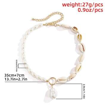 Uunuuo Sea Shell Necklace for Women Gold Shell Pendant Necklace Layered Shell Necklaces Summer Necklace Surfer Beach Necklace Summer Stuff